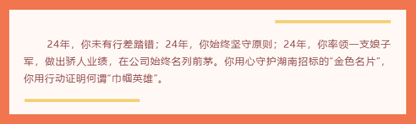 不待扬鞭自奋蹄。吴健就是这样一个干一行,爱一行,钻研一行,精通一行的业内专家,她常以“至人无己、神人无功、圣人无名”自勉,在平凡的岗位中,以不为名利的高贵品质、客观公道的处事原则、耐心细致的工作作风、持之以恒的奉献精神,自强不息,勇于开拓,为推动湖南招标高质量发展奉献着自己的智慧和力量。